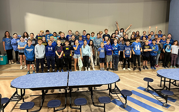 Schools can earn up to 100 extra credit pledges during the contest by organizing a Blue Shirt Day where students and staff wear a blue shirt. To earn credit, schools submitted a group photo of students wearing blue shirts before the contest ended.