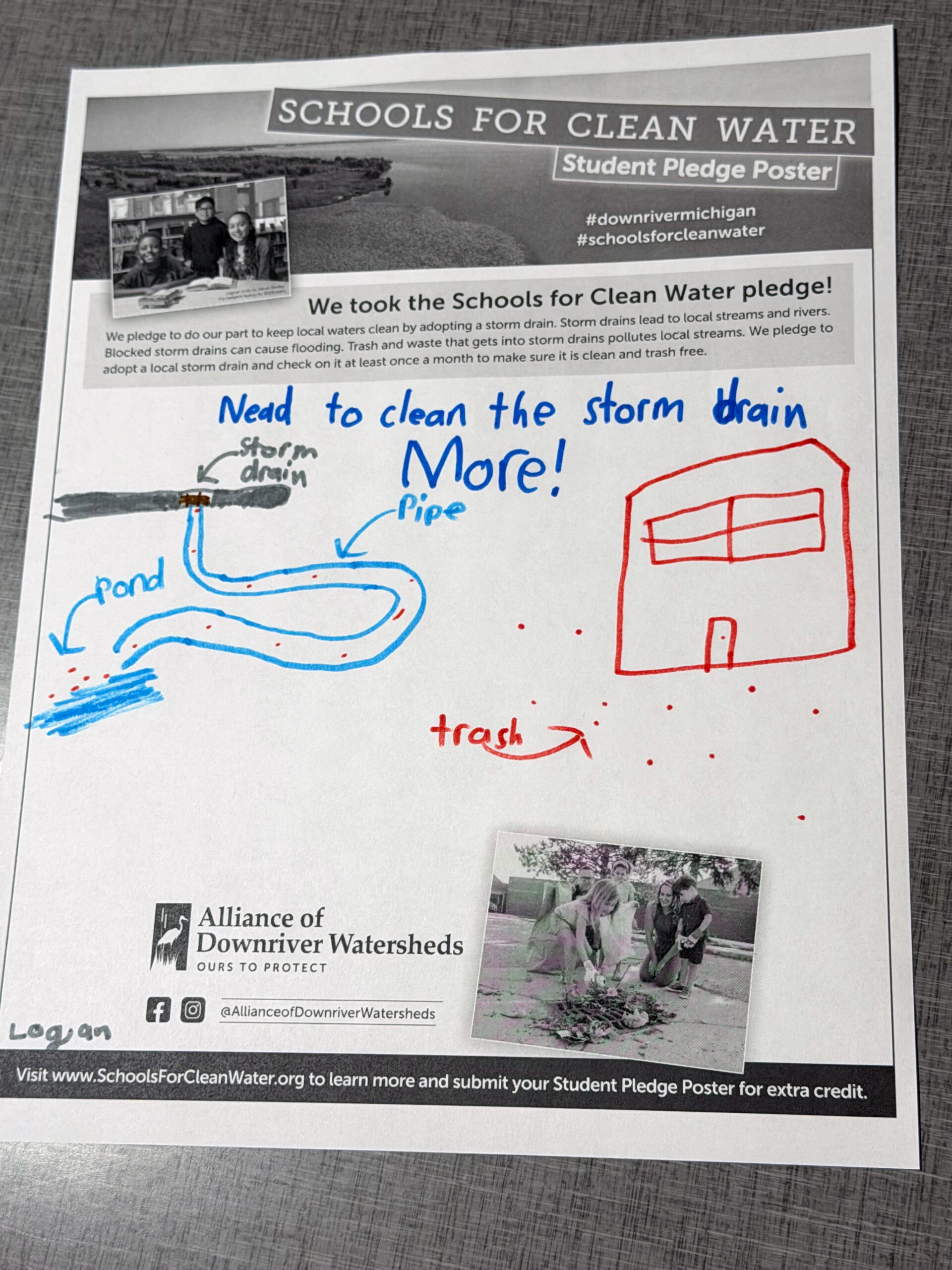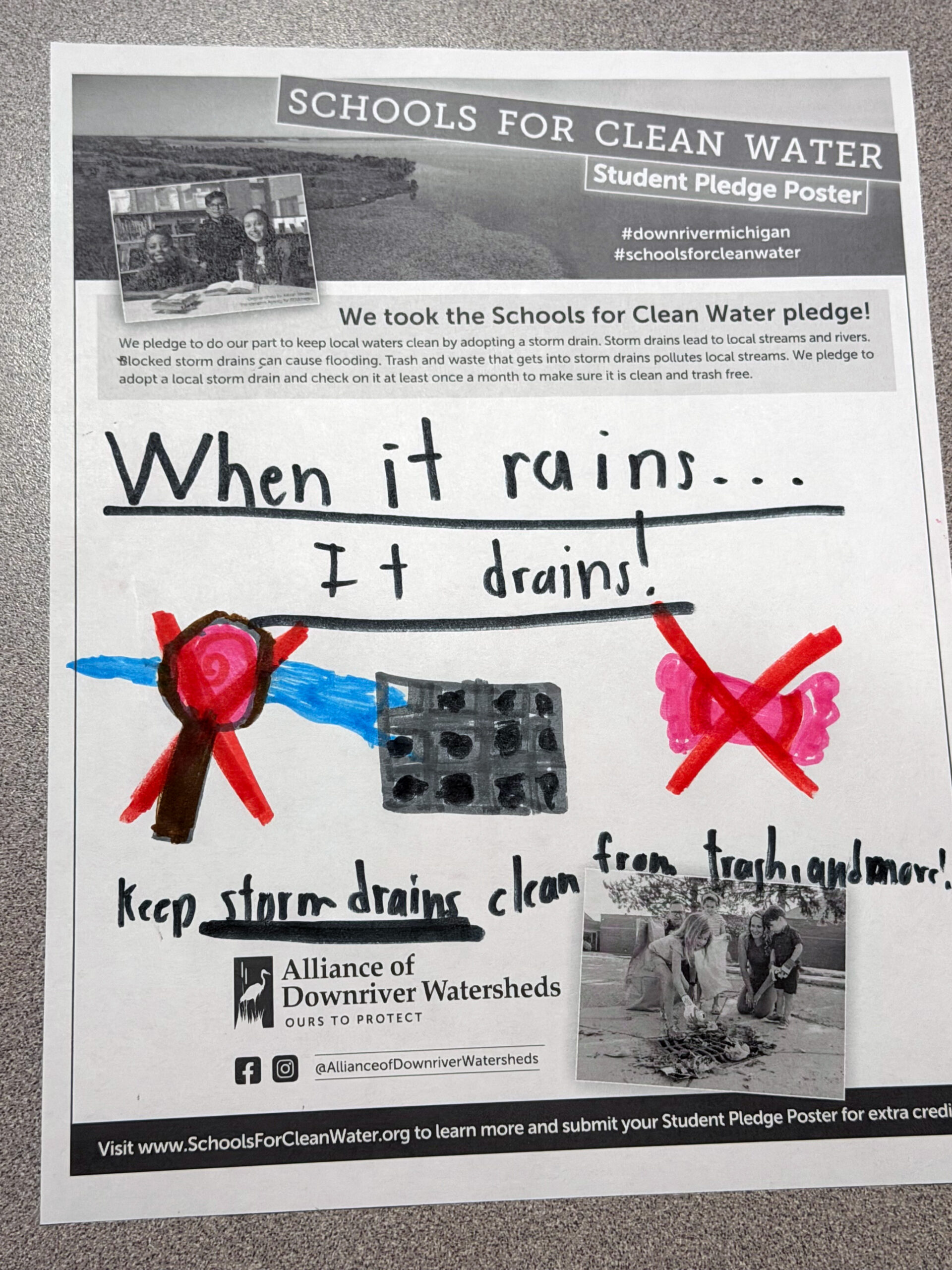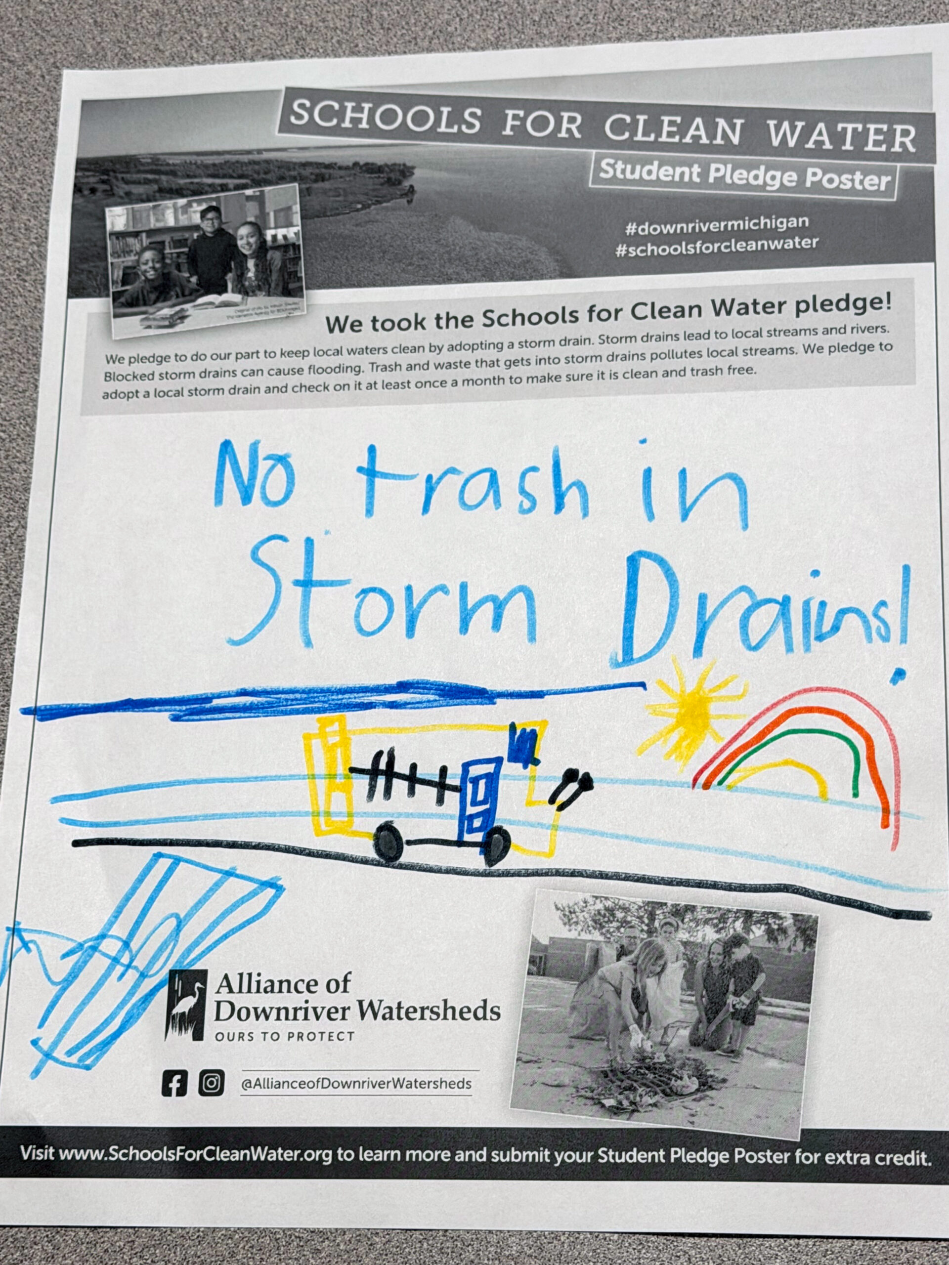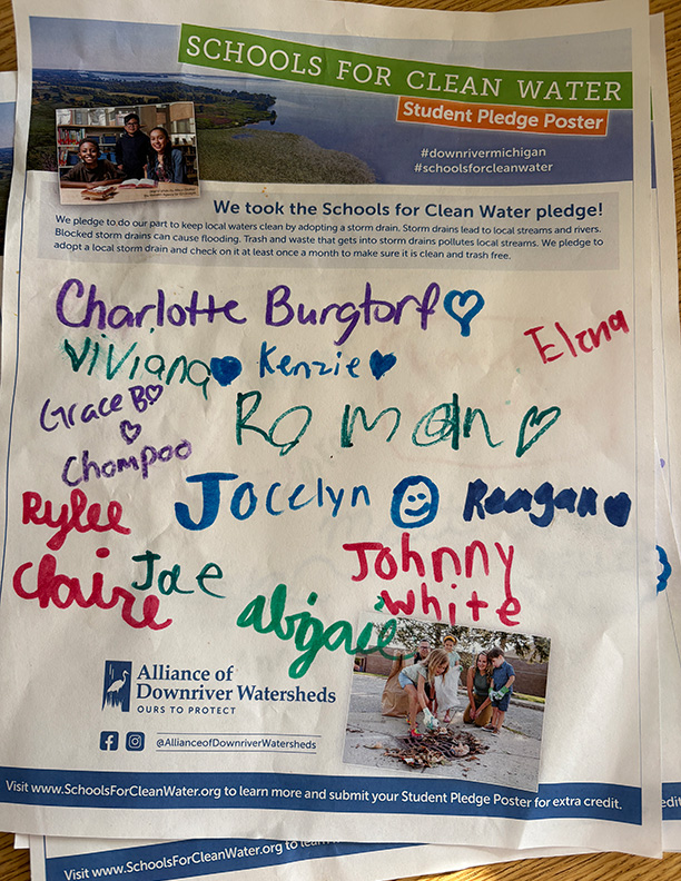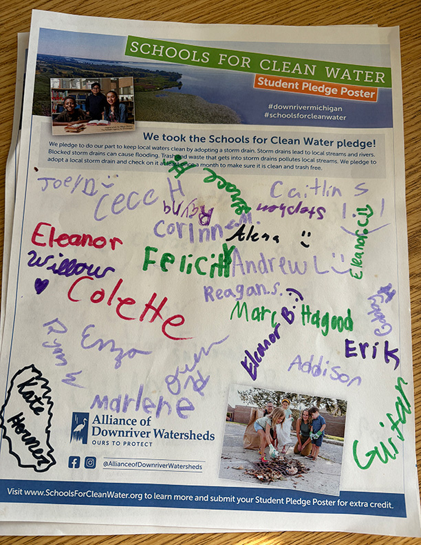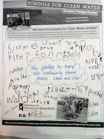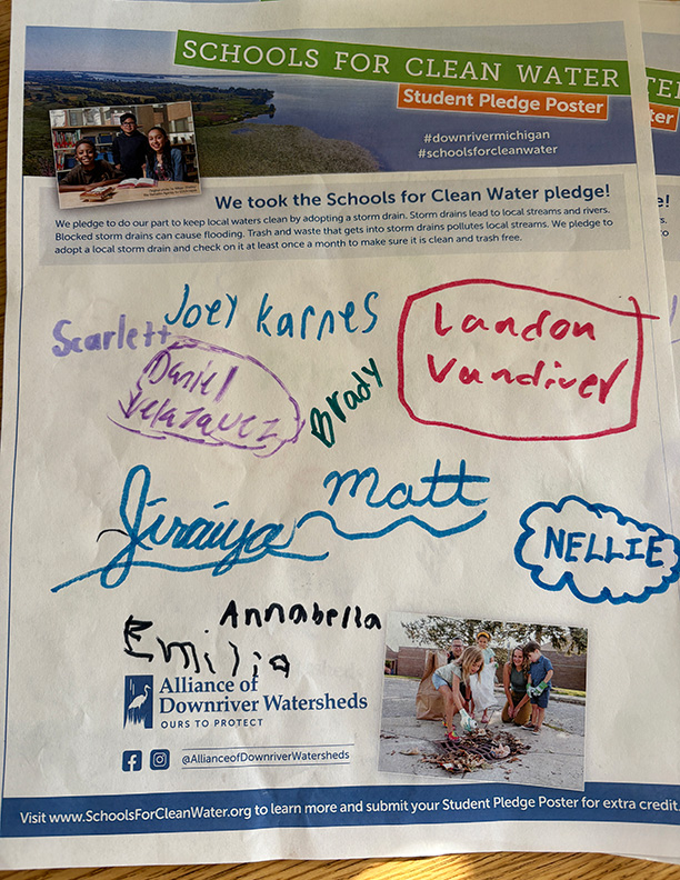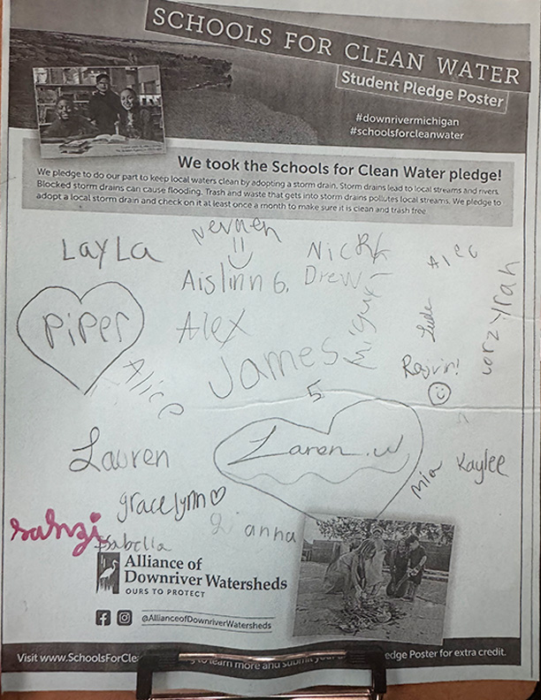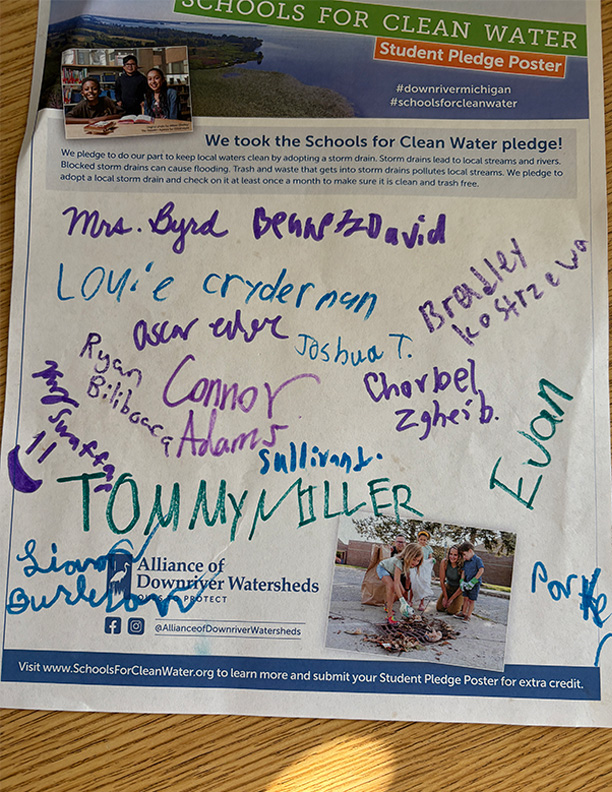 Students have the opportunity to sign and submit a Student Pledge Poster, promising to do their part to keep trash out of local storm drains. To earn up to 50 extra credit pledges, schools submitted a photo of the signed poster before the contest ended.