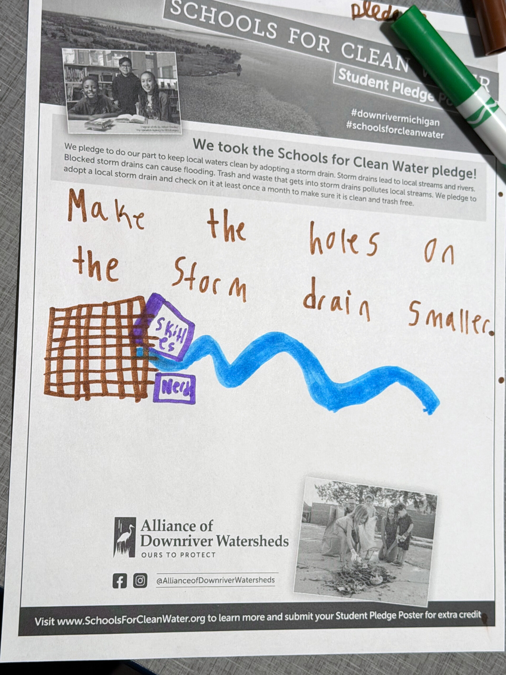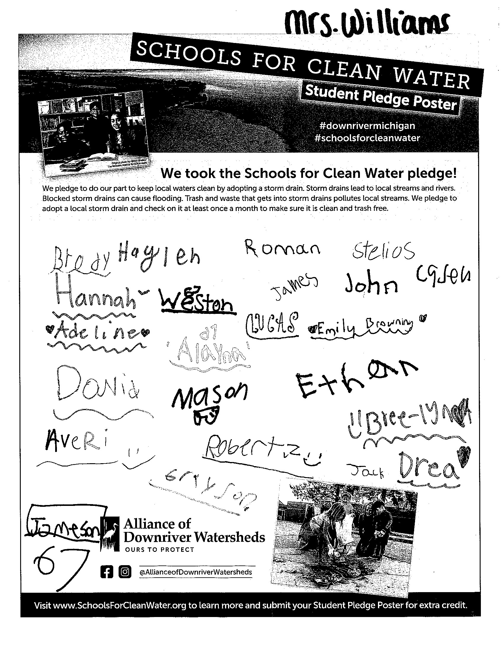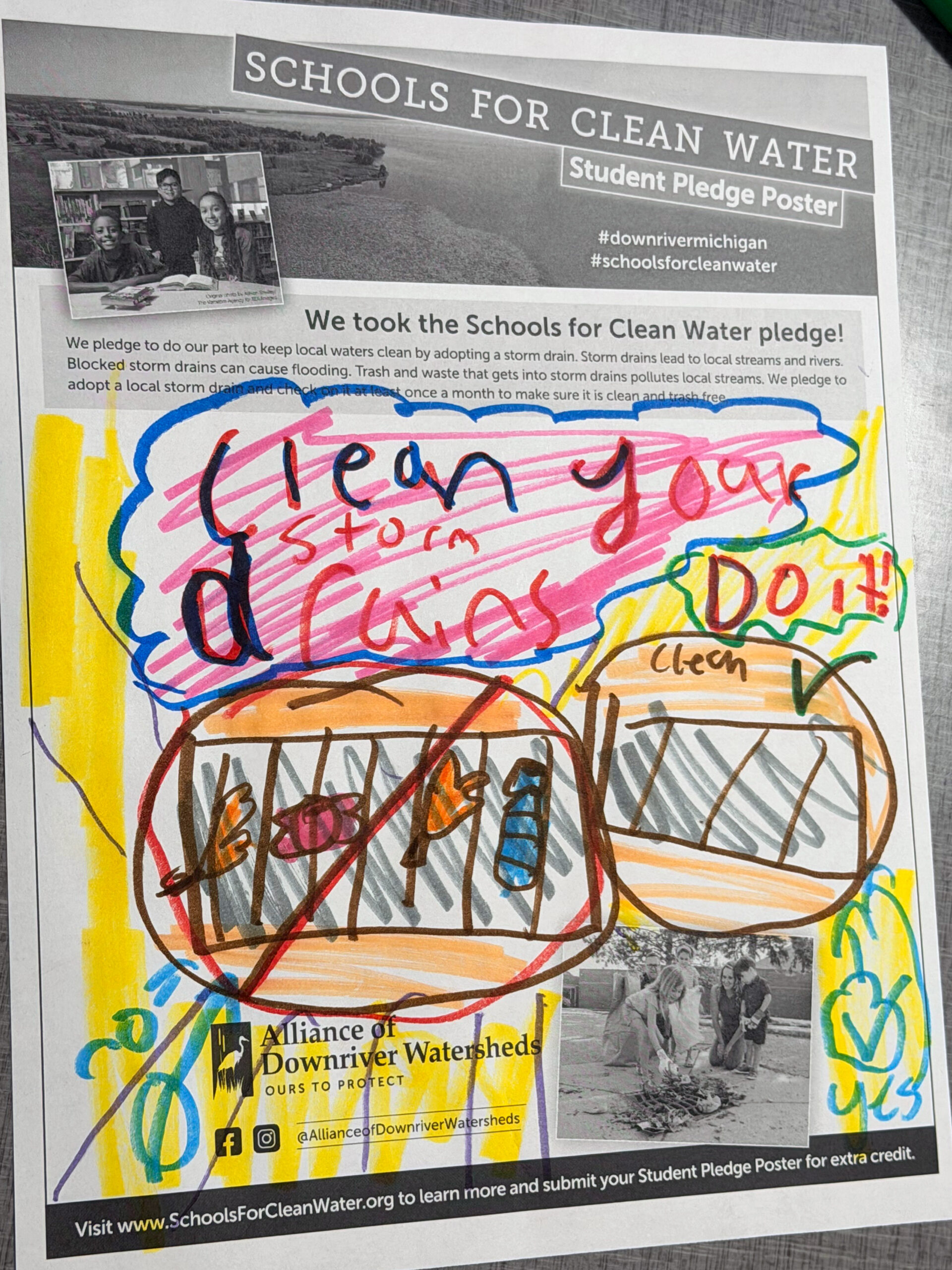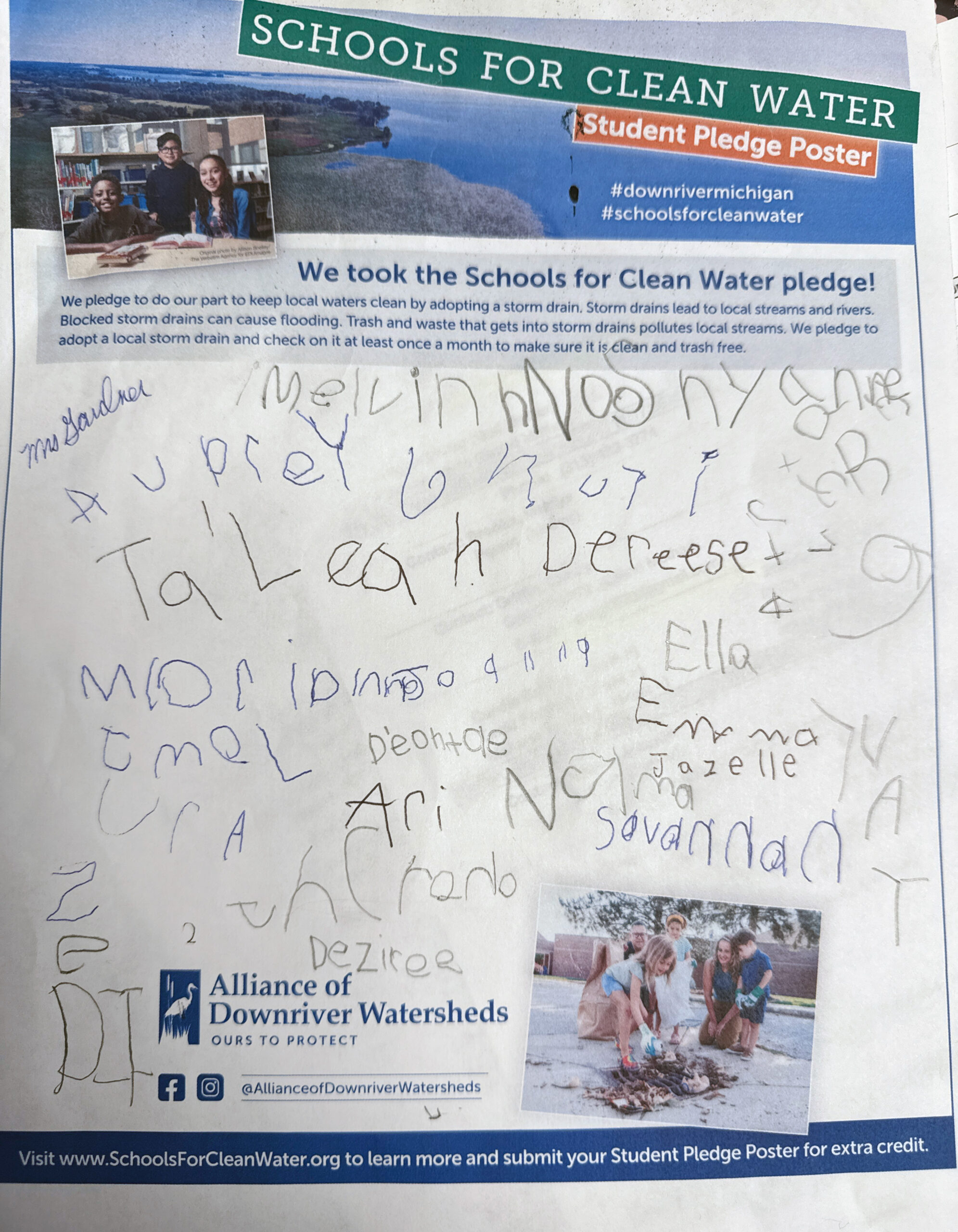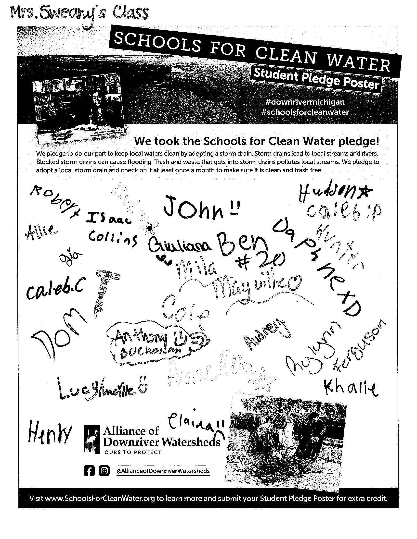 Students have the opportunity to sign and submit a Student Pledge Poster, promising to do their part to keep trash out of local storm drains. To earn up to 50 extra credit pledges, schools submitted a photo of the signed poster before the contest ended.