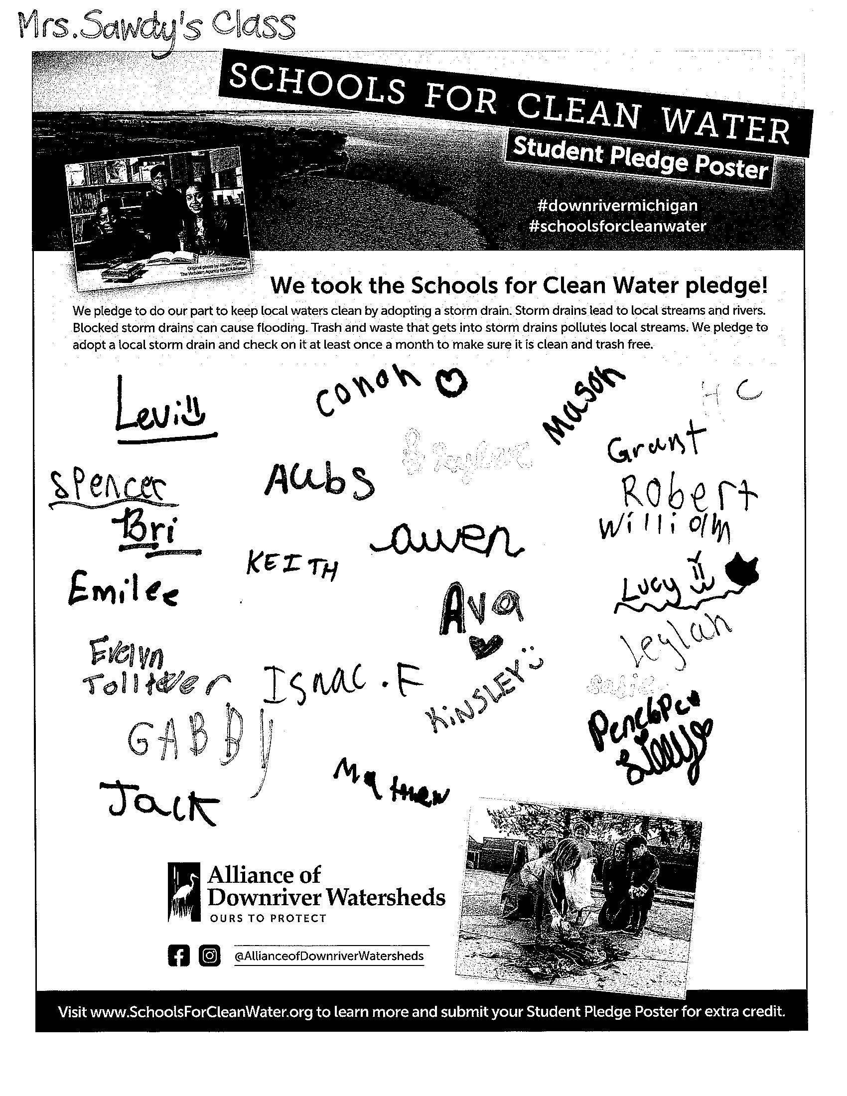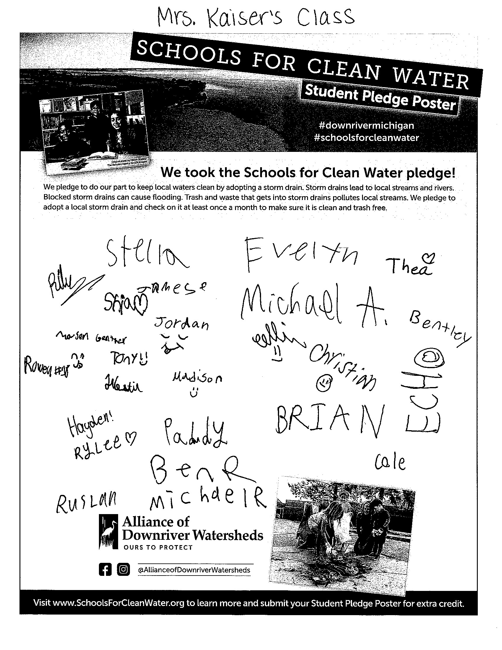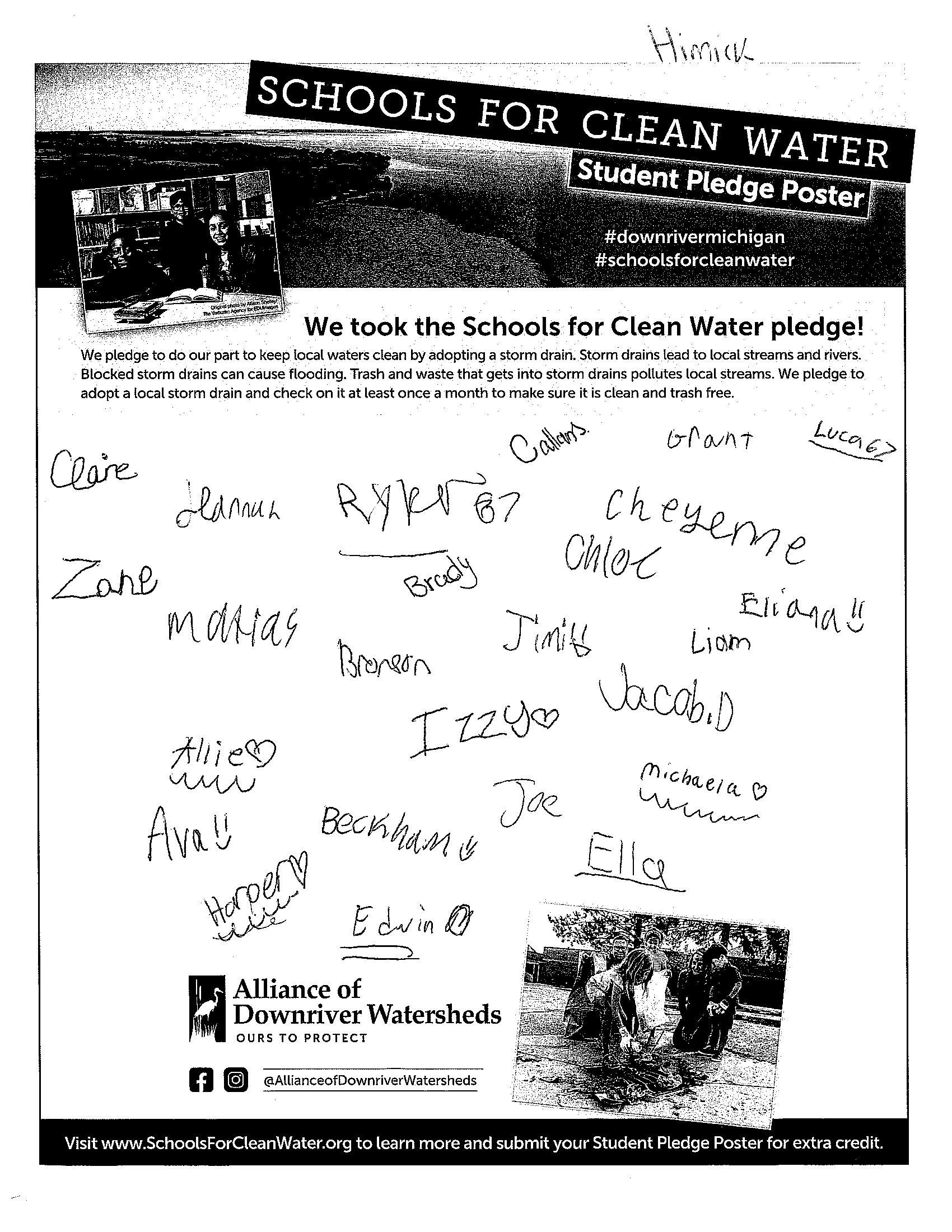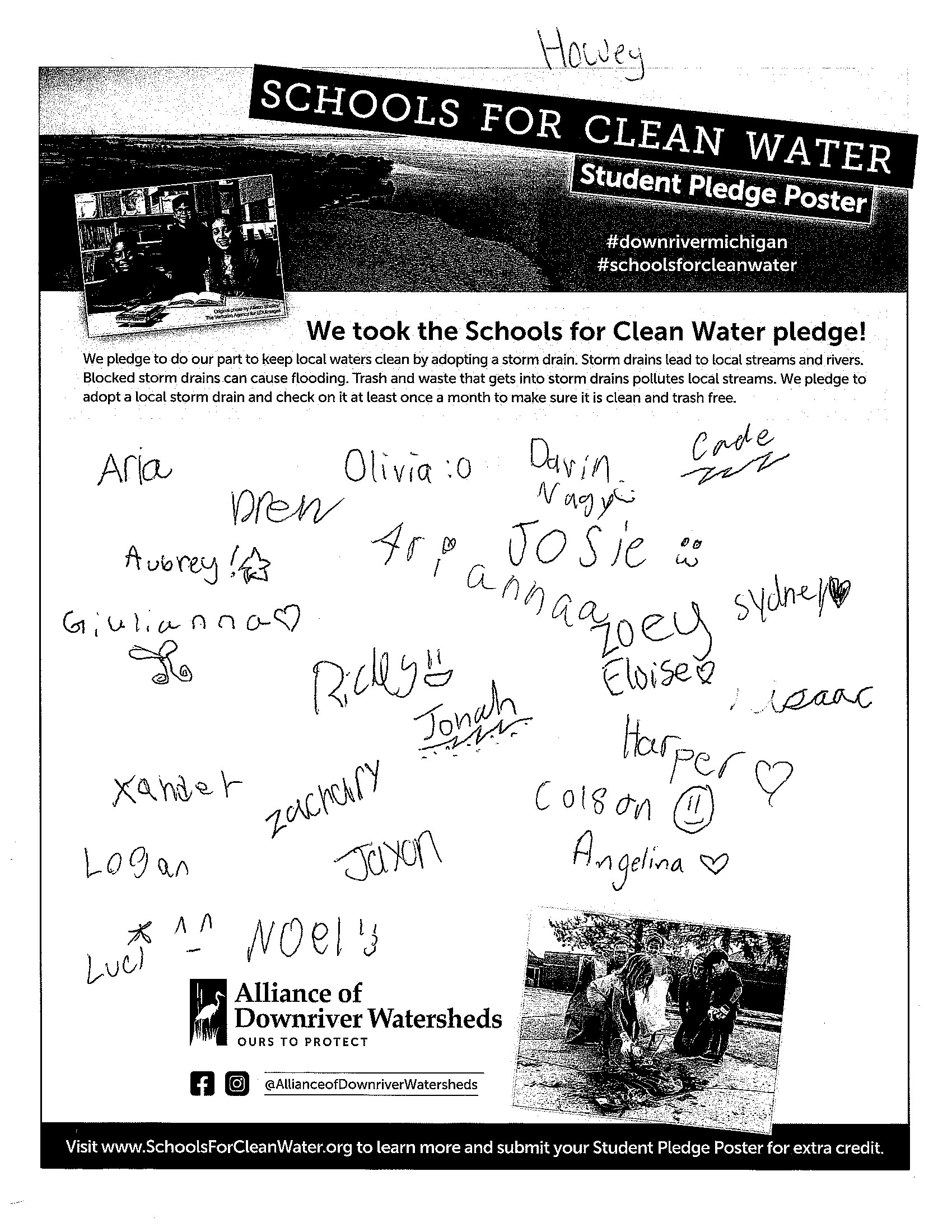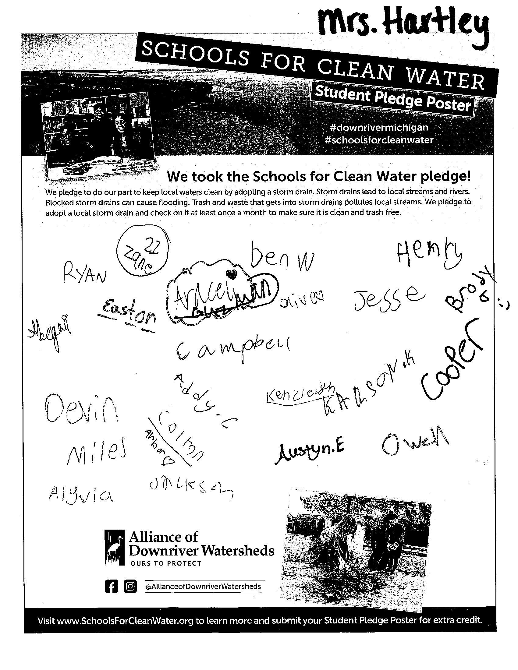 Students have the opportunity to sign and submit a Student Pledge Poster, promising to do their part to keep trash out of local storm drains. To earn up to 50 extra credit pledges, schools submitted a photo of the signed poster before the contest ended.